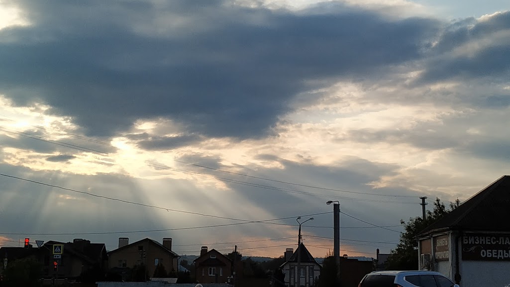 Лучи заходящего солнца.