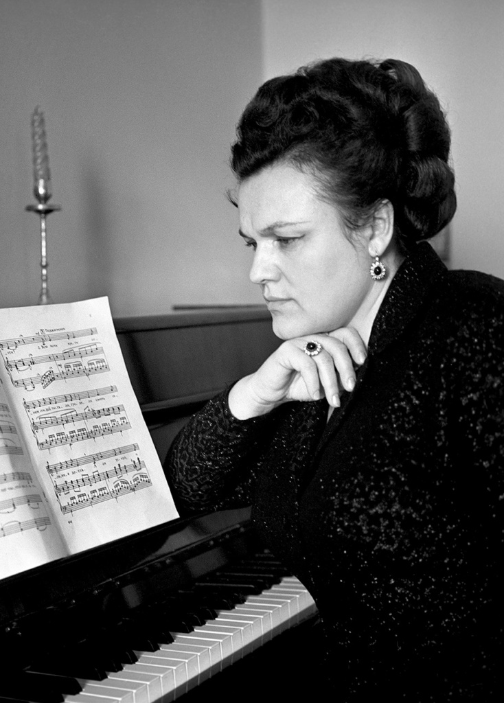 Moscow, Soviet Union. Soviet folk singer Lyudmila Zykina by the piano at home. Valentin Kuzmin/TASS.