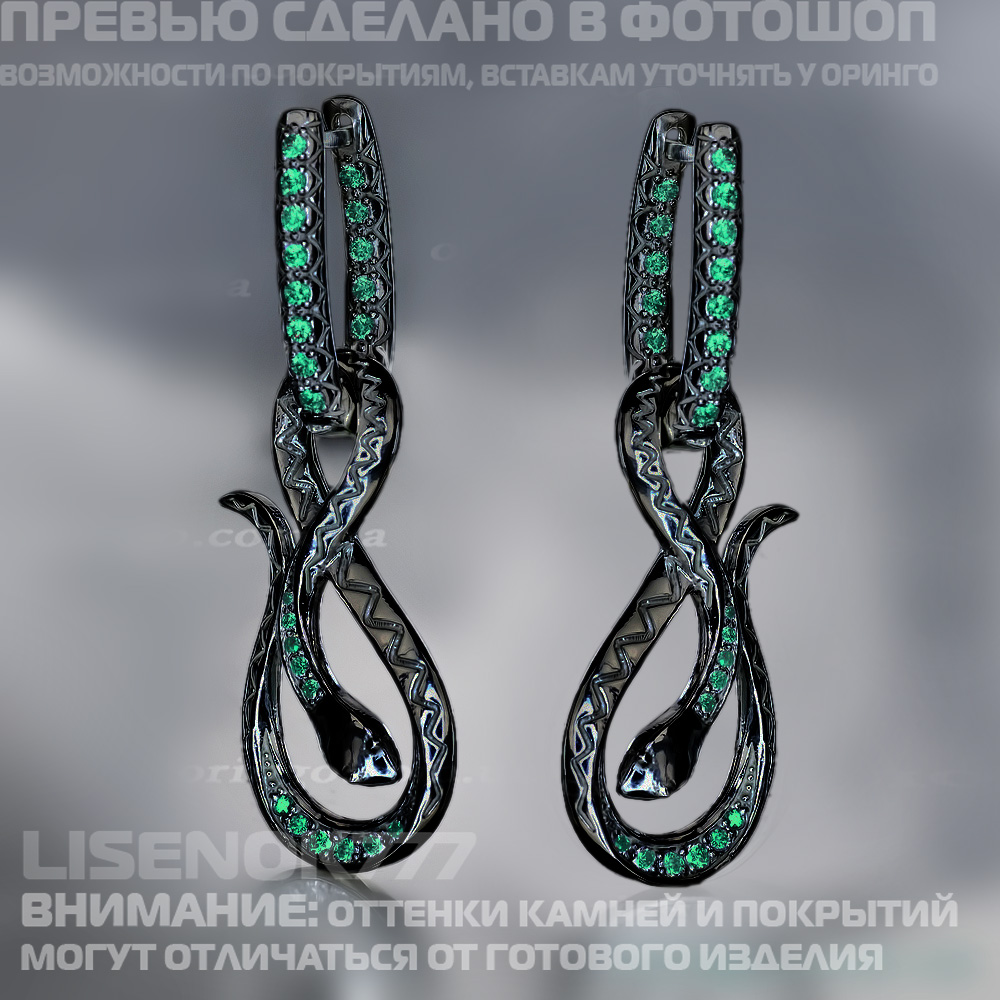 Змея серьги черн род зелен